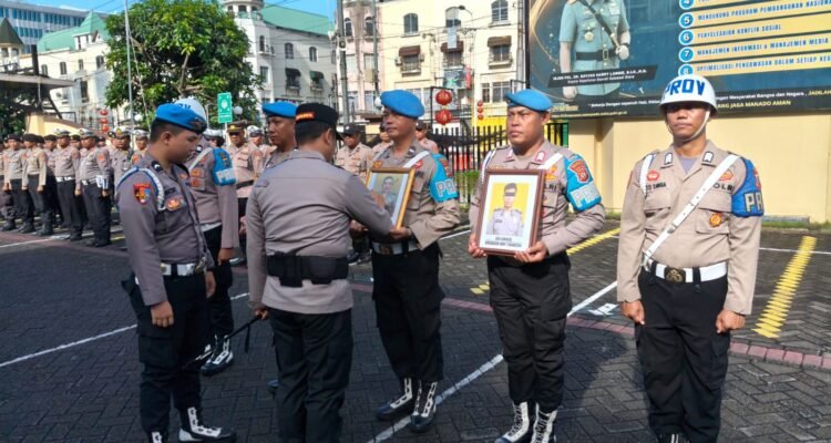 Upacara PTDH tiga personel Polresta Manado, dipimpin langsung oleh Kapolresta Manado Kombes