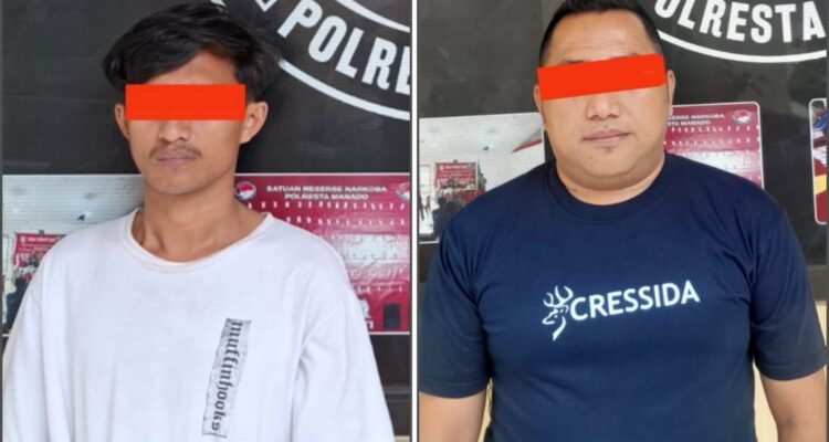 Dua tersangka pengedar obat terlarang merk Trihexyphenidyl. MANADO, Poskomanado.co.id – Satuan Reserse