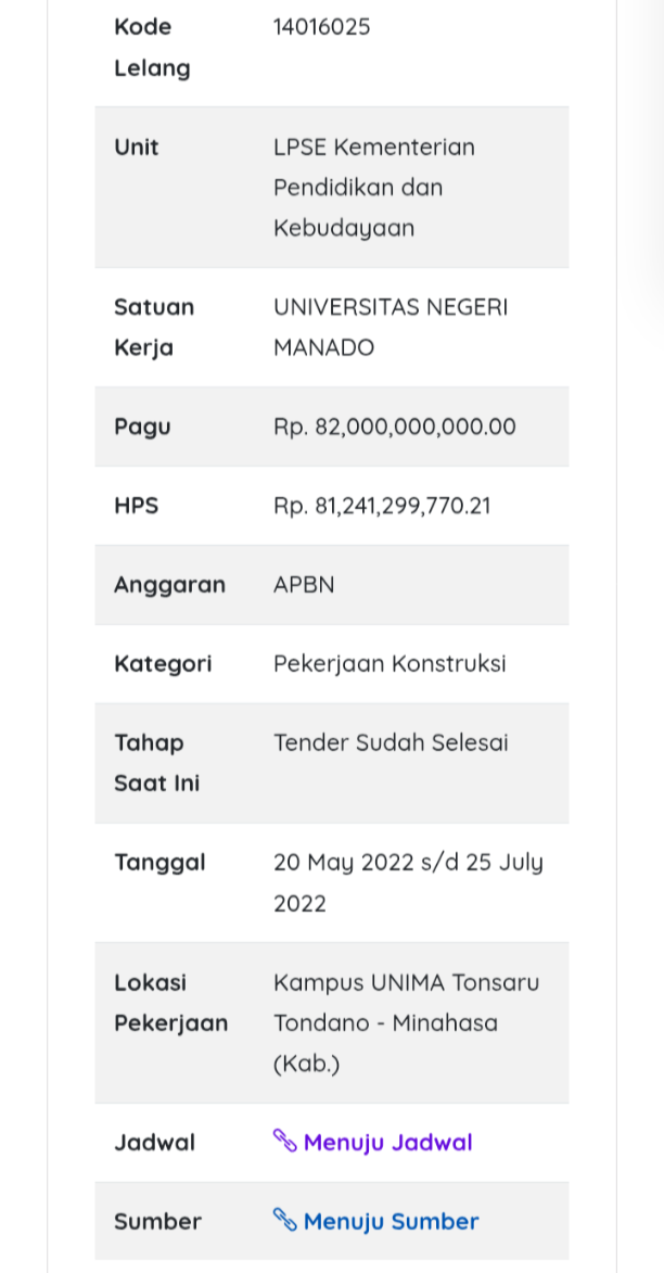 “Kemudian pembayaran di 2024 sekira Rp 3 miliar dan sesuai pernyataan REKTOR UNIMA Joseph Kambey pembayaran di 2025 sekira Rp 10,9 miliar yang sudah dipotong dengan denda sekira Rp 3 miliar sekian. Kalau DITOTAL semua pembayaran termasuk denda dan koma-koma itu sudah sekira Rp 71 miliar. Sudah sesuai dengan angka ADENDUM I Nomor: 5737/UN41/023.17.02/2022 tentang PENAMBAHAN BIAYA yang merubah nilai kontrak dari sekira Rp 64 miliar sekian menjadi Rp 71 miliar,” sambung sumber.