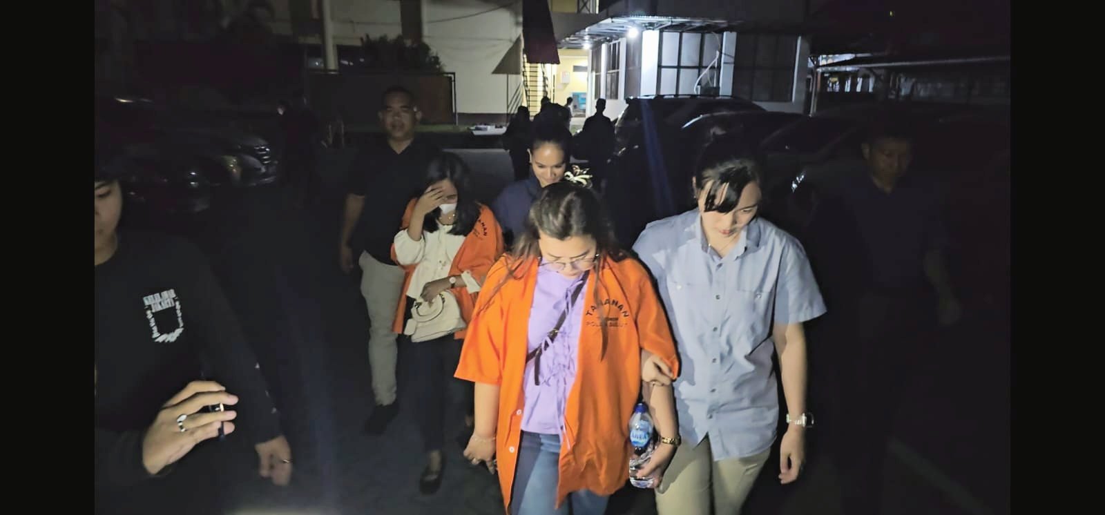 Kedua tersangka saat hendak digiring ke ruang tahanan.