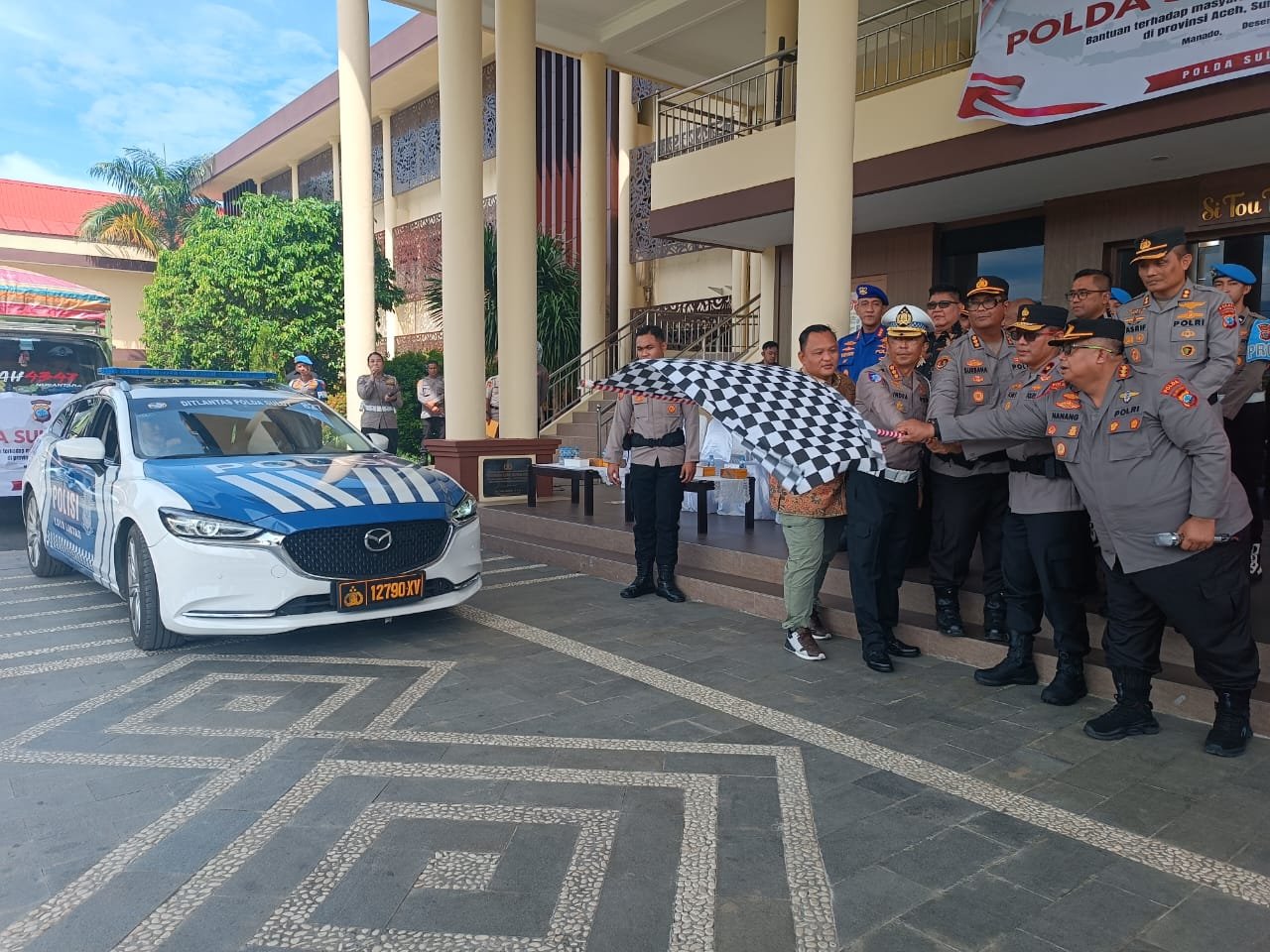 Wakapolda Sulut Brigjen Pol Awi Setiyono didampingi beberapa PJU saat melepas pengiriman bantuan kemanusiaan.