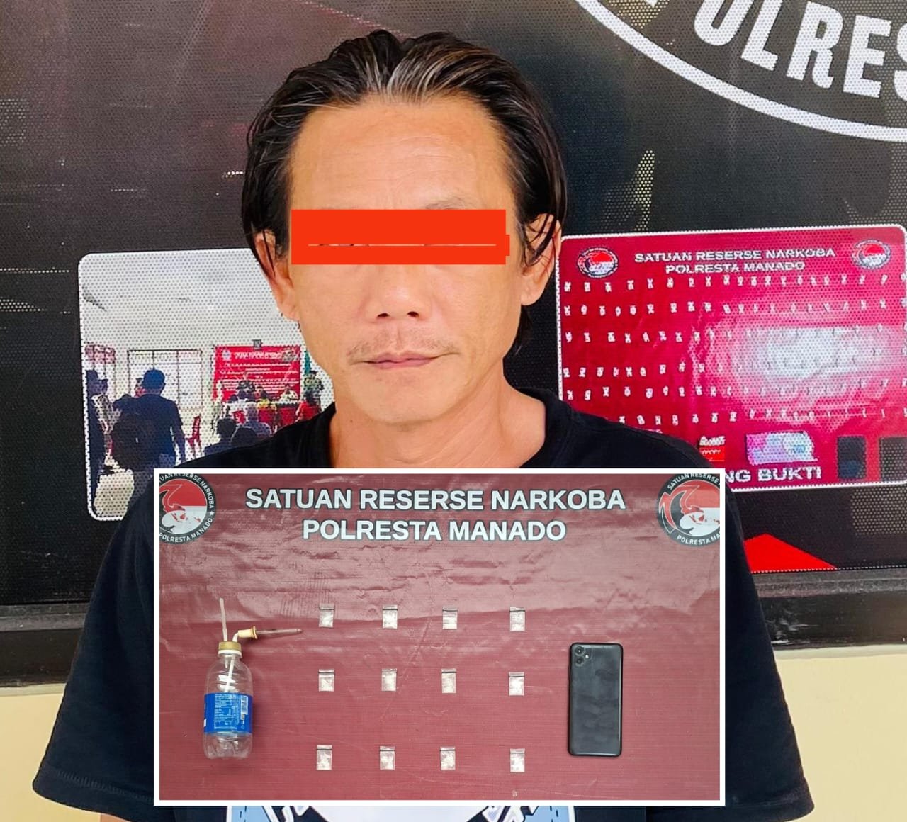 “Di dalam kamar kontrakannya ditemukan lagi barang bukti berupa 11 paket sabu dan alat hisap (Bong). Pelaku dan barang bukti dibawa ke Mapolresta Manado,” terang Kasat Narkoba.
