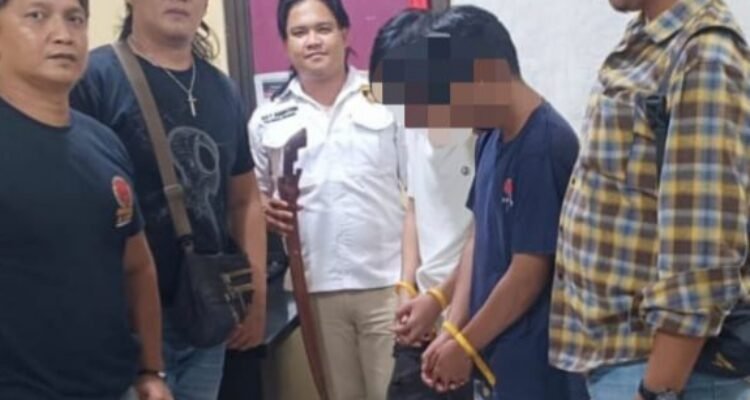 Pelaku bersama barang bukti saat berada di Mapolresta Manado usai diamankan di